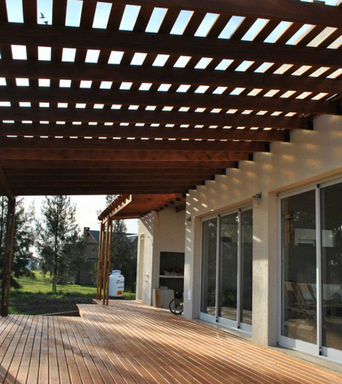 Son elementos arquitectónicos que sirven como protección del sol, pueden ser adosadas o independientes, todo va acorde a la estructura de su hogar y su gusto, usualmente son implementadas en jardines o lugares exteriores, Dymap ofrece pérgolas fabricadas en madera de alta calidad y durabilidad.